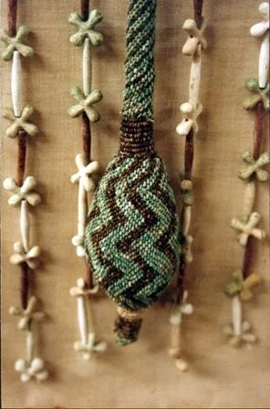 Detail of the beaded tail on a different apron preserved at the Egyptian Museum in Cairo as Catalogue No. 11206. Image courtesy Jolanda Bos.To visit Jolanda's website, www.ancientbeadwork.com, click here. Jolanda also maintains a second website, www.wearableheritage.com (click here), and a Wearable Heritage Facebook page (click here).